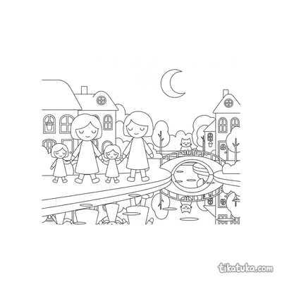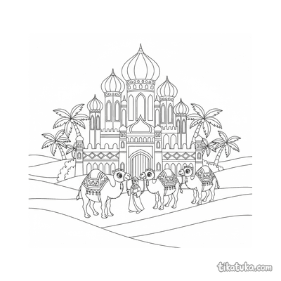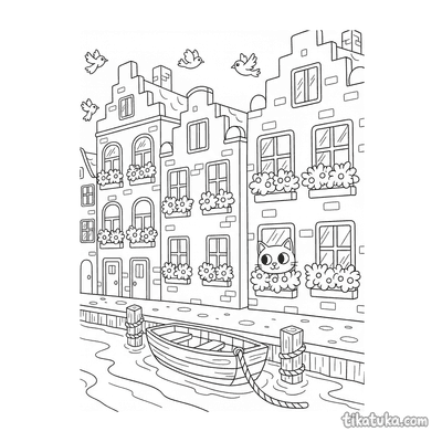 В этом разделе собраны раскраски на архитектурную тему: арочные мосты над лесными ручьями, замки с садами и фонтанами, маяки на скалистых утёсах, дворцы в пустыне и уютные домики на каналах. На каждом листе разворачивается сцена — строительство каменного моста, праздник в замковом дворе, ночная прогулка вдоль канала или исследование старинного квартала.