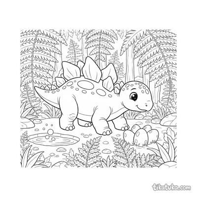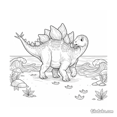 Динозавры — одна из самых любимых тем у детей самых разных возрастов. В этом разделе собраны раскраски с травоядными и хищными динозаврами: стегозаврами в папоротниковых зарослях, семьями трицератопсов, птерозаврами над водой и детёнышами брахиозавра у реки. Каждый рисунок изображает конкретную сцену из жизни доисторического мира — динозавры едят, играют, отдыхают и исследуют побережье.
