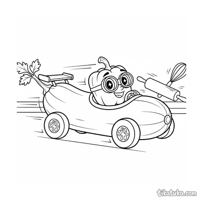 Раздел охватывает всё разнообразие сада и огорода: от крупных простых форм — целого яблока или стручка гороха — до детальных ботанических разрезов граната и артишока. Среди сюжетов встречаются танцующая брокколи с цветной капустой, морковное семейство на грядке, кабачок в виде гоночной машины и ананас-сёрфер на волне. Рисунки подходят и малышам, которые только знакомятся с овощами, и детям постарше, готовым к сложным композициям.