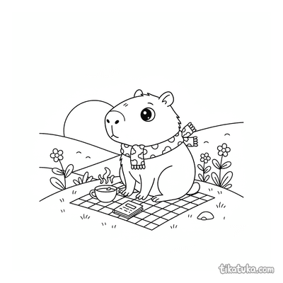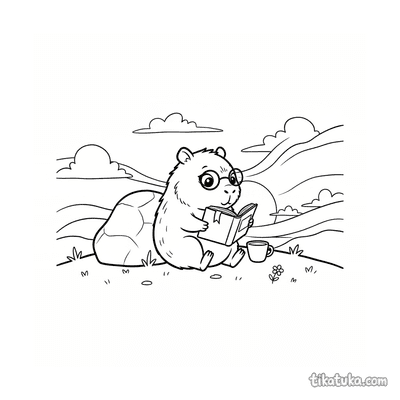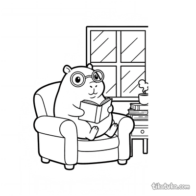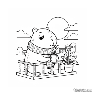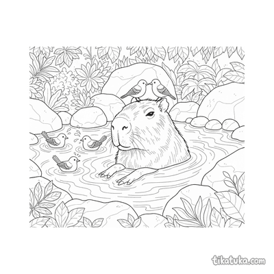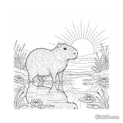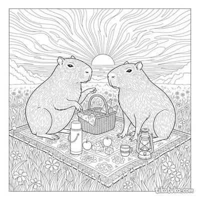 Серия объединяет 129 раскрасок с капибарами в самых расслабленных и уютных сценах. Есть одиночные портреты философских капибар на фоне заката, семейные сцены у грязевых ванн, капибары-художники с этюдниками и даже капибара-звездочёт. Персонажи изображены крупно и выразительно — их невозмутимые мордочки легко узнаются даже самыми маленькими детьми.