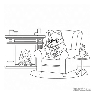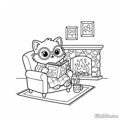 Раздел «Мило и уютно» объединяет раскраски с самыми домашними и трогательными сюжетами. Котята дремлют в корзинках для вязания и читают книги у камина, енотики и лисички хлопочут на кухне, а динозаврики-библиотекари листают страницы вместе с друзьями. Все картинки передают атмосферу покоя и маленьких повседневных радостей.