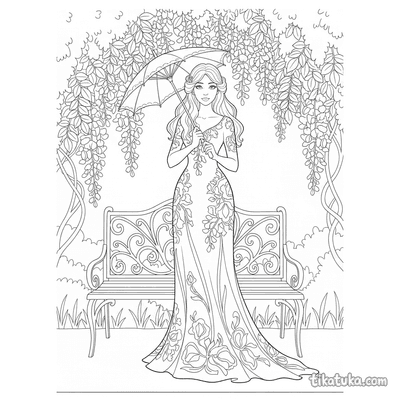 В разделе собрано 130 раскрасок на тему моды и одежды: подиумные и авангардные платья, исторические костюмы от Возрождения до начала XX века, народные наряды с вышивкой, спортивные и повседневные образы, а также фантазийные одеяния — мантии волшебниц, костюмы фей и персонажи в киберпанк-эстетике. Сцены охватывают самые разные обстановки: от неоновых городских улиц и лесных полян до подиумов и деревенских праздников.