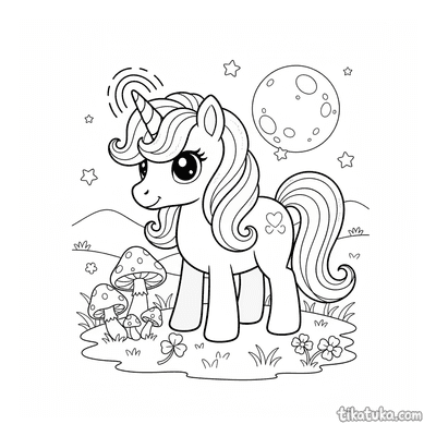 Здесь собраны пони с характером и занятием: принцесса в луговой короне, фермер у пугала, рыцарь у стен замка, художник у мольберта и механик с ящиком инструментов. Рядом с ними — единороги у хрустальных пещер и радужных водопадов, пегасы, несущиеся сквозь грозовые тучи, и жеребята, дремлющие на соломенной подстилке. Каждый рисунок — отдельная сцена со своим сюжетом и героем.