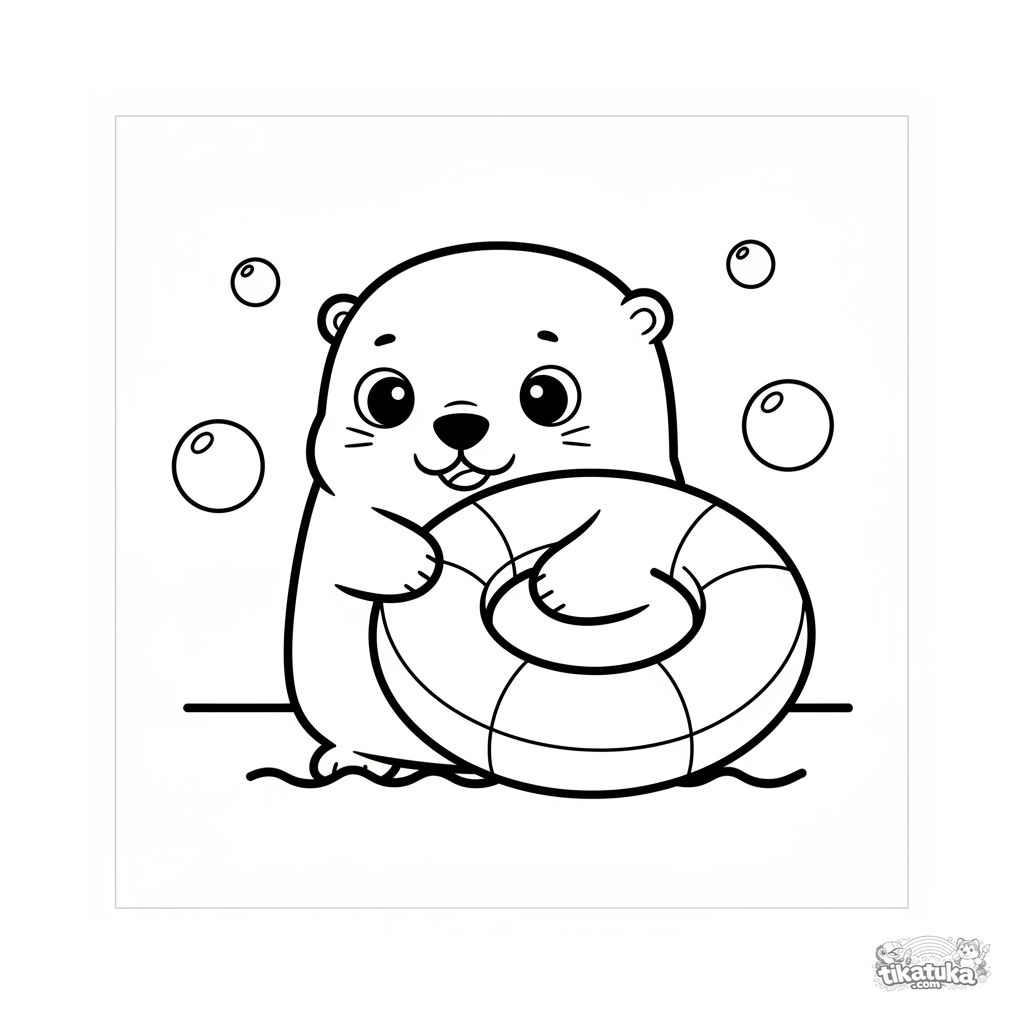 Очень простая раскраска для малышей 2-3 лет: детеныш выдры катает надувной круг по дну бассейна. Огромные области для закрашивания, один главный предмет.