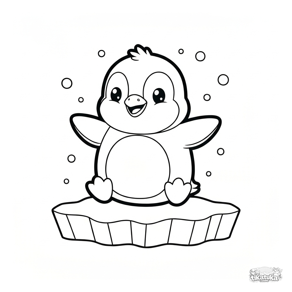 Милая раскраска с пингвинёнком для детей 2-5 лет. Малыш переваливается на льдине, картинка имеет крупные формы и понятный сюжет.