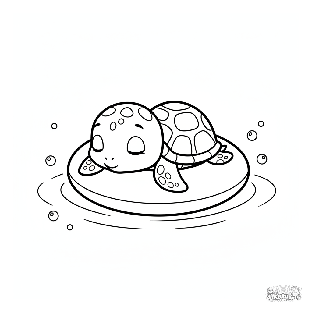 Простая раскраска для малышей: черепашка спит в надувном круге в бассейне. Крупные формы, мало деталей. Для детей 2-3 лет.