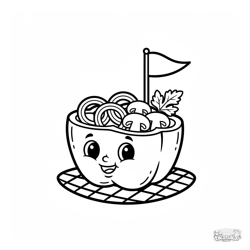 Простая раскраска для малышей 2-3 лет: перчик-лодочка плывёт по решётке садового гриля. Очень крупные, закрытые формы для раскрашивания.