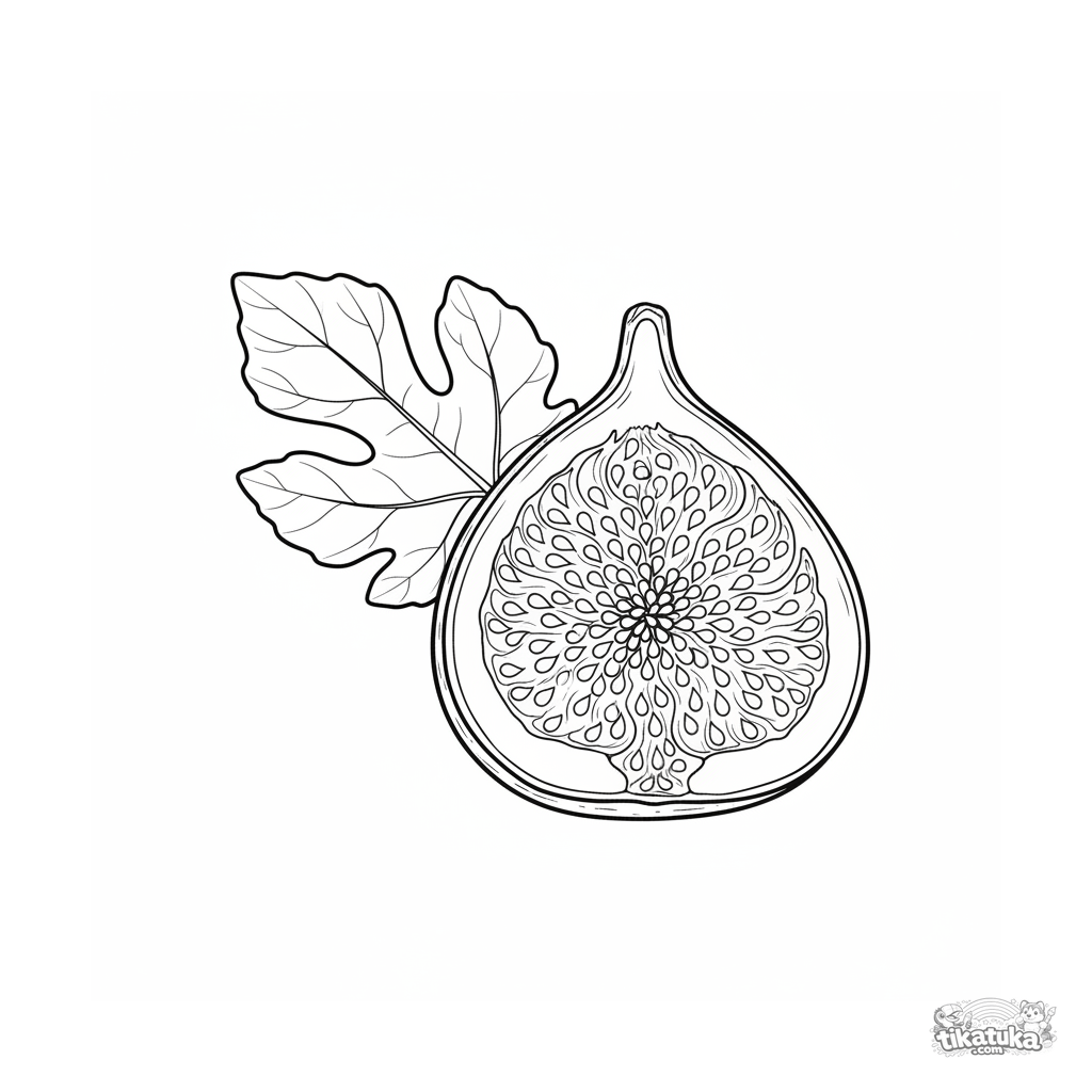 Детальная ботаническая раскраска - разрез спелого инжира. Для детей 10-12 лет. Реалистичный стиль, образовательный контент, чёткие контуры.