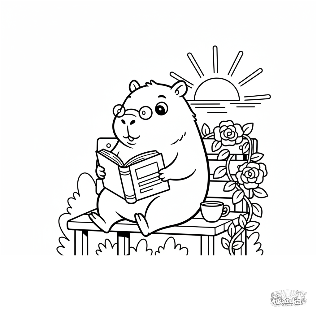 Раскраска в теме «Капибары и чилл» с уровнем «Средне». Подходит для возраста 7-9 лет, удобно распечатывается дома и сразу открывается в онлайн-режиме.