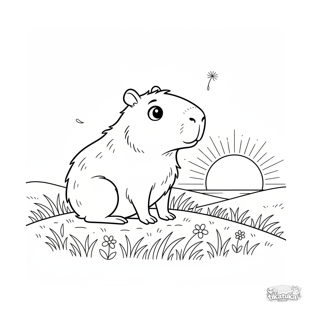 Раскраска в теме «Капибары и чилл» с уровнем «Средне». Подходит для возраста 7-9 лет, удобно распечатывается дома и сразу открывается в онлайн-режиме.