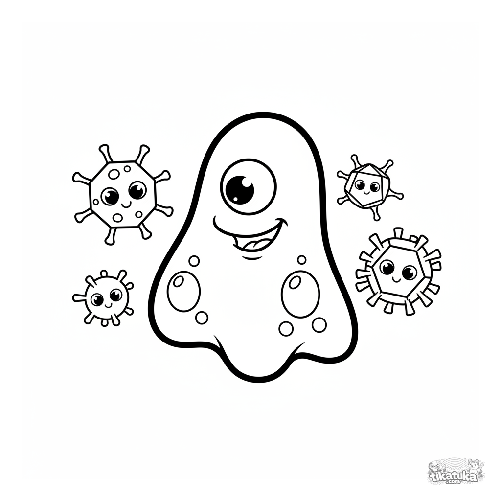 Раскраска в теме «Микробы» с уровнем «Легко». Подходит для возраста 4-6 лет, удобно распечатывается дома и сразу открывается в онлайн-режиме.
