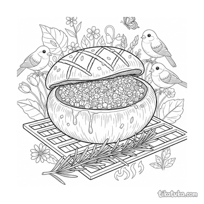 Раскраска в теме «Еда» с уровнем «Средне». Подходит для возраста 4-6 лет, удобно распечатывается дома и сразу открывается в онлайн-режиме.