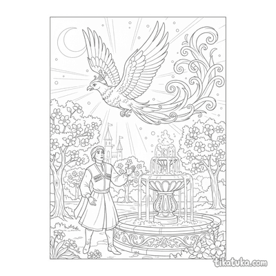 Раскраска в теме «Сказки» с уровнем «Средне». Подходит для возраста 4-6 лет, удобно распечатывается дома и сразу открывается в онлайн-режиме.