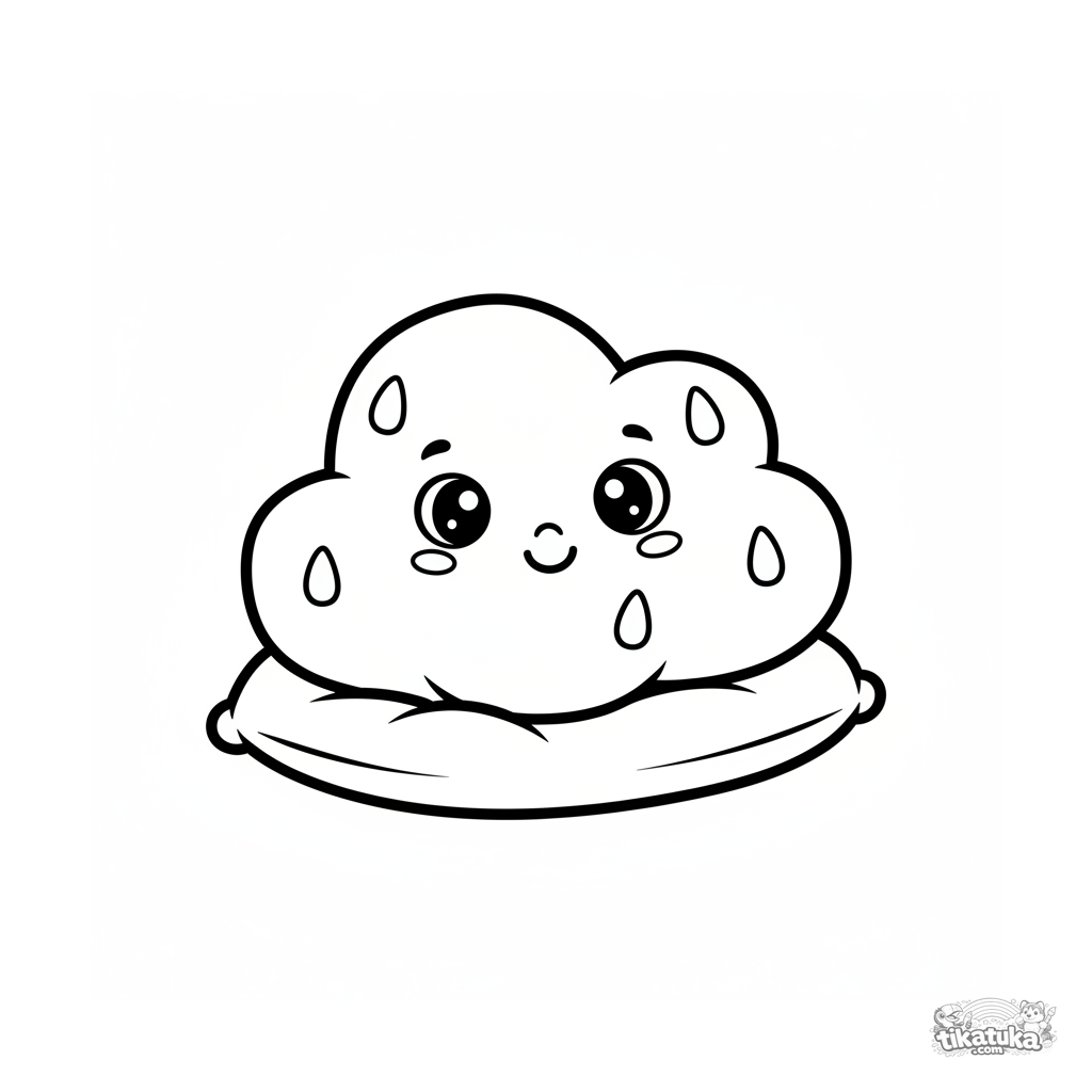 Детская раскраска для возраста 2-3 года: улыбающаяся подушка в форме облачка лежит на другой подушке. Очень мало линий, большие замкнутые области для закрашивания.