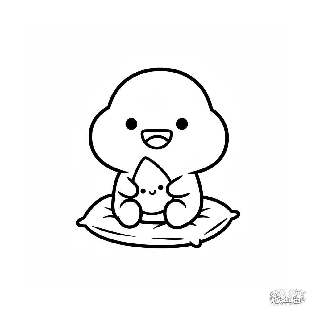 Раскраска для малышей: улыбающееся облачко сидит на подушке. Крупные простые формы и минимум деталей подходят для самых маленьких художников.