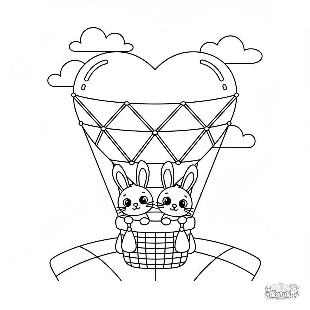 Раскраска для малышей 2-3 лет: большой воздушный шар в форме сердца летит над лугом. Крупные простые формы, толстые контуры, идеально для первых карандашей.