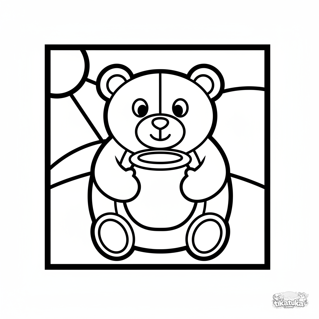 Раскраска для малышей 2-3 лет: большой плюшевый мишка с горшочком мёда. Простые крупные формы, толстые контуры, идеально для первых карандашей. Раскраска по номерам для детей.