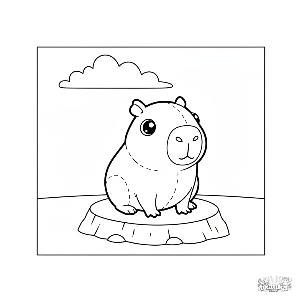 Раскраска в теме «Капибары и чилл» с уровнем «Легко». Подходит для возраста 2-3 года, удобно распечатывается дома и сразу открывается в онлайн-режиме.