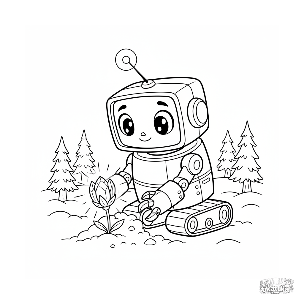 Робот R-2 бережно откапывает светящийся кристаллический бутон Снежного Цветка из-под снега. Скачайте, распечатайте или раскрасьте онлайн!