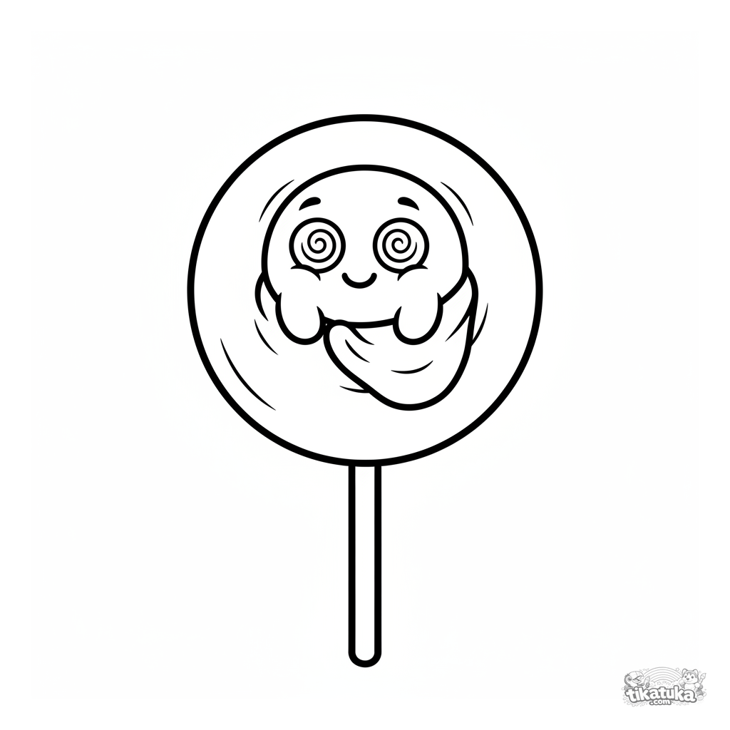 Простая раскраска для малышей 2-3 года: круглый дружелюбный микроб сладко спит на леденце. Крупные формы, мало деталей, широкие поля для закрашивания.