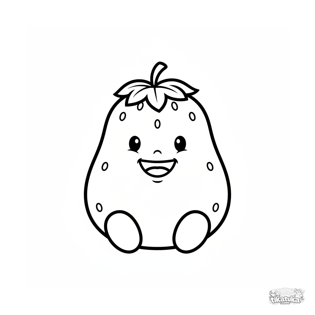 Очень простая раскраска с большой улыбающейся клубникой для детей 2-3 лет. Крупные формы, толстые контуры, много свободного места для раскрашивания.