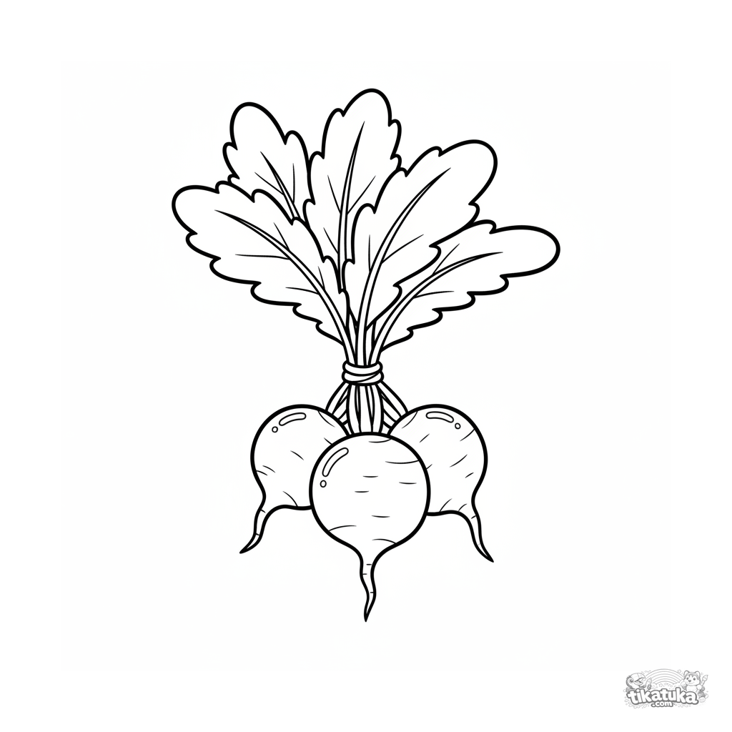 Очень простая раскраска пучка редиски для самых маленьких. Крупные чёткие формы. Для развития моторики у детей 2-3 лет.
