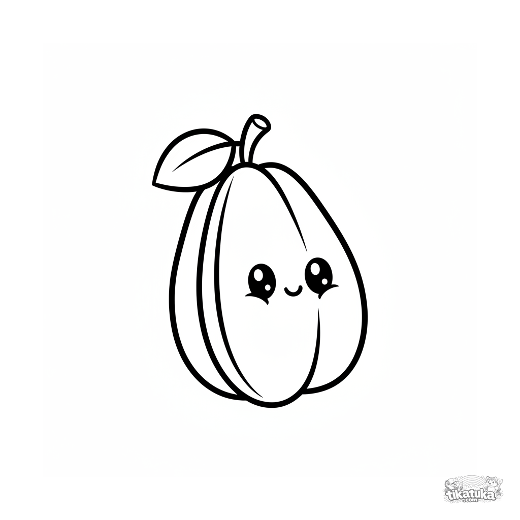 Очень простая раскраска для малышей 2-3 лет: один фрукт карамбола (звездочка) на белом фоне. Толстые контуры, большие области для закрашивания.