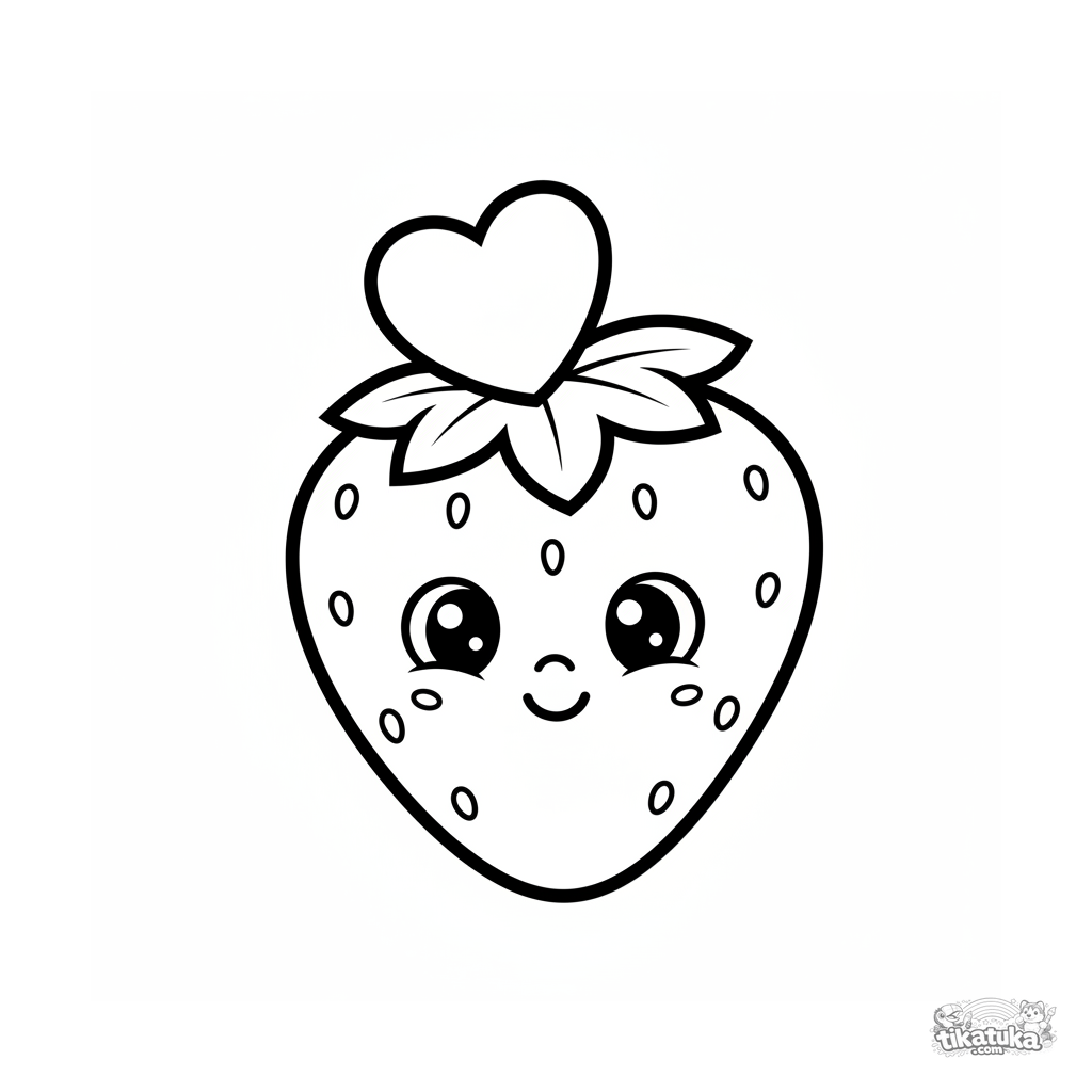 Очень простая раскраска с большой улыбающейся клубничкой для малышей 2-3 лет. Толстые контуры, огромные поля, одна большая форма.