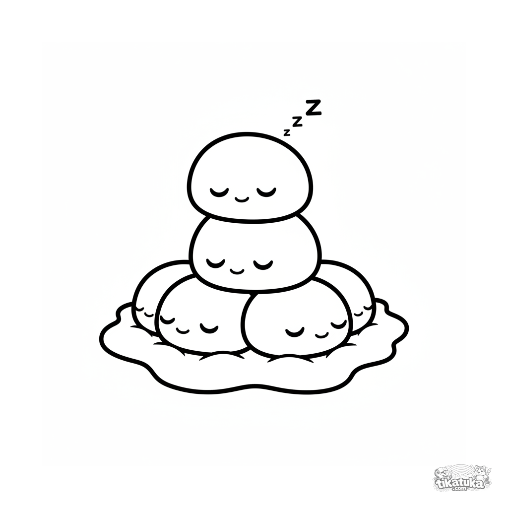 Простая раскраска для малышей 2-3 года: стопка сонных клубничных моти. Крупные формы, мало деталей, широкие поля для раскрашивания.