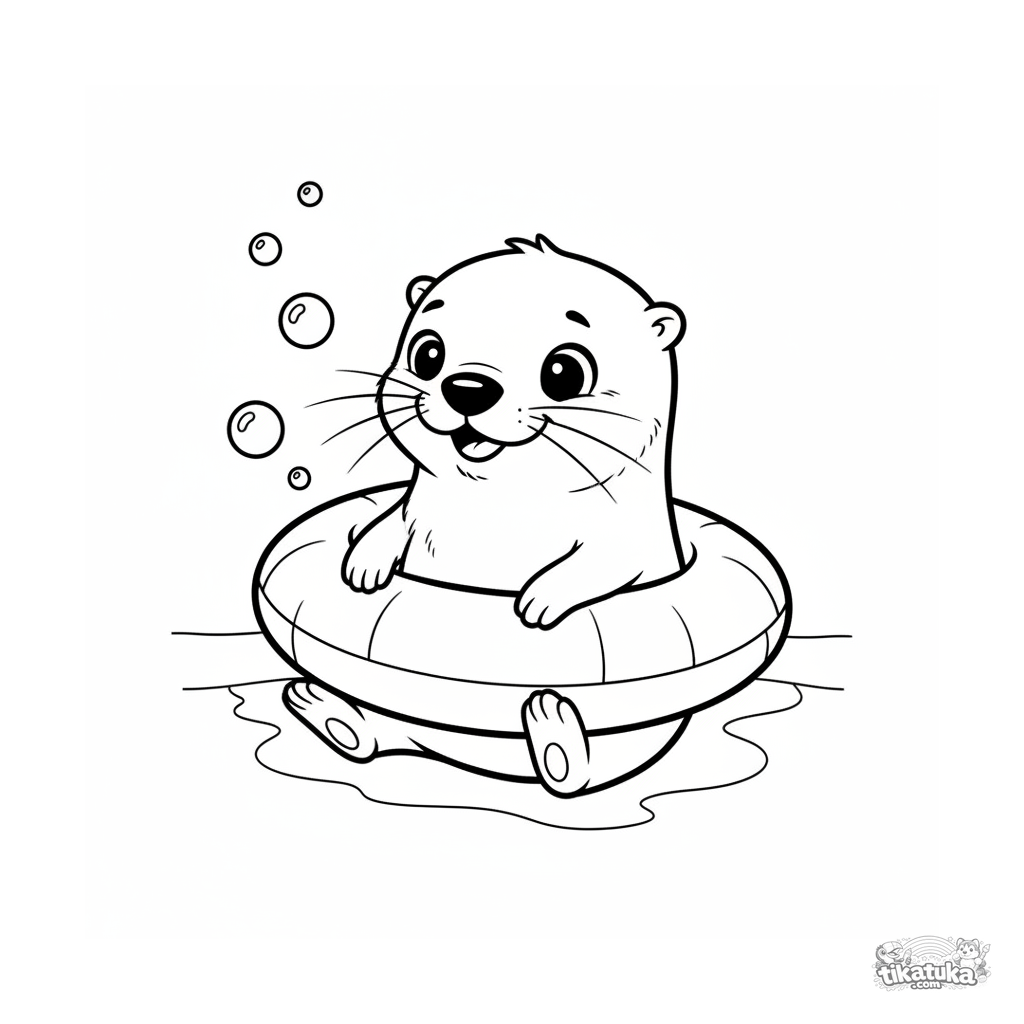 Раскраска для детей 4-6 лет: весёлый выдрёнок катает надувной круг по дну бассейна. Выразительная мордочка, простой фон, дружелюбный стиль.