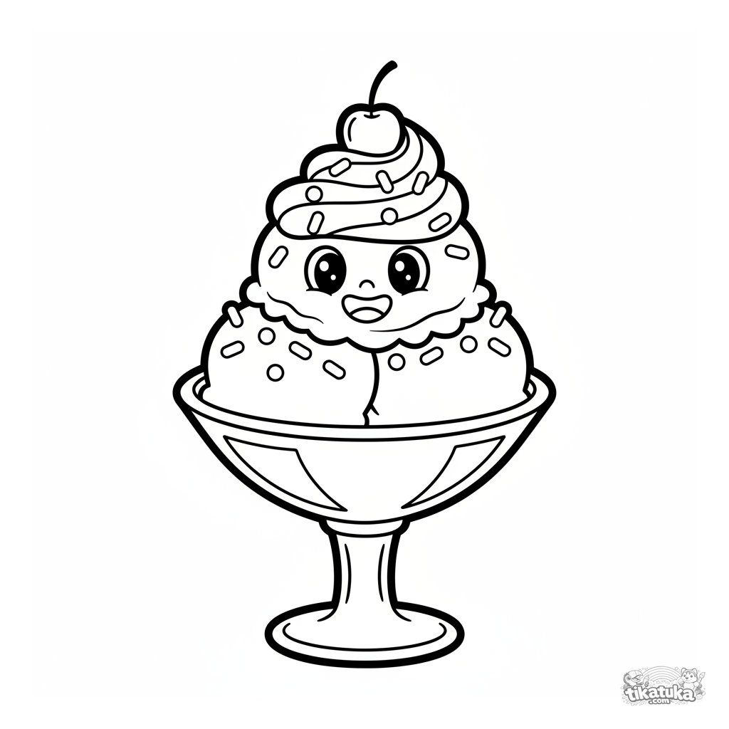 Простая раскраска улыбающегося мороженого с посыпкой для малышей 2-3 лет. Крупные простые формы, идеально для первых карандашей.