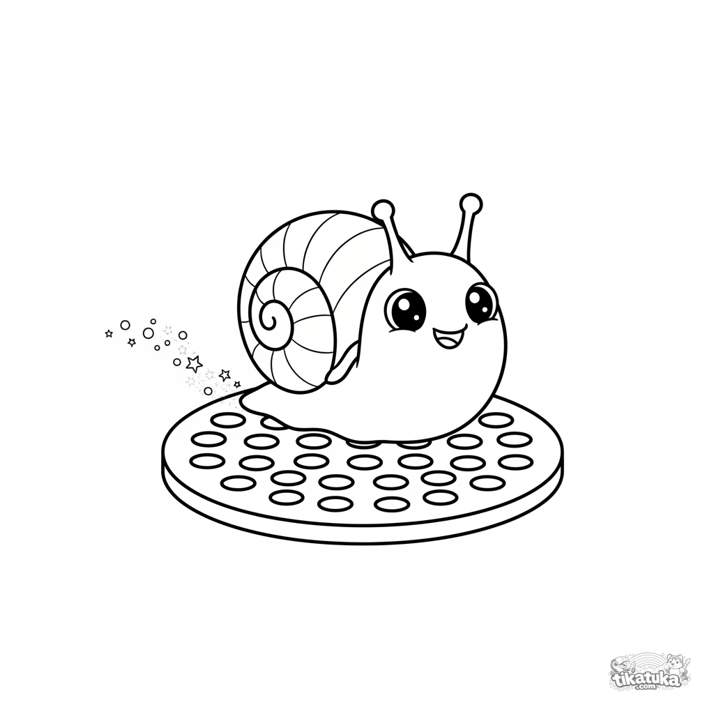 Раскраска для малышей: крошечная кавайная улитка ползёт по решётке слива на дне бассейна. Очень простые формы, большие области для закрашивания, милое выражение лица.