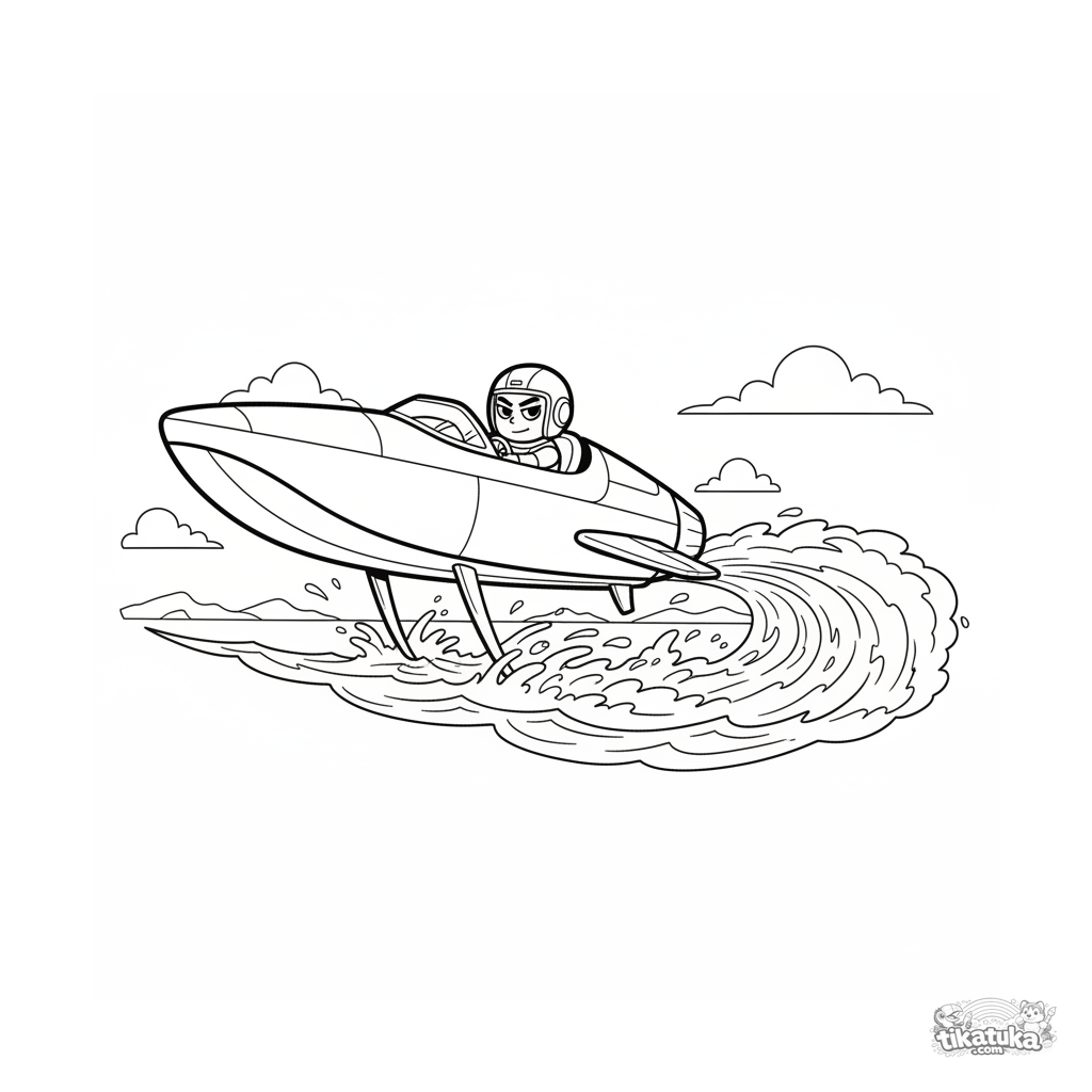 Раскраска для детей 7-9 лет: скоростной гидрофойл мчится по морю, подняв корпус над водой. Динамичная композиция с брызгами и кильватерным следом.