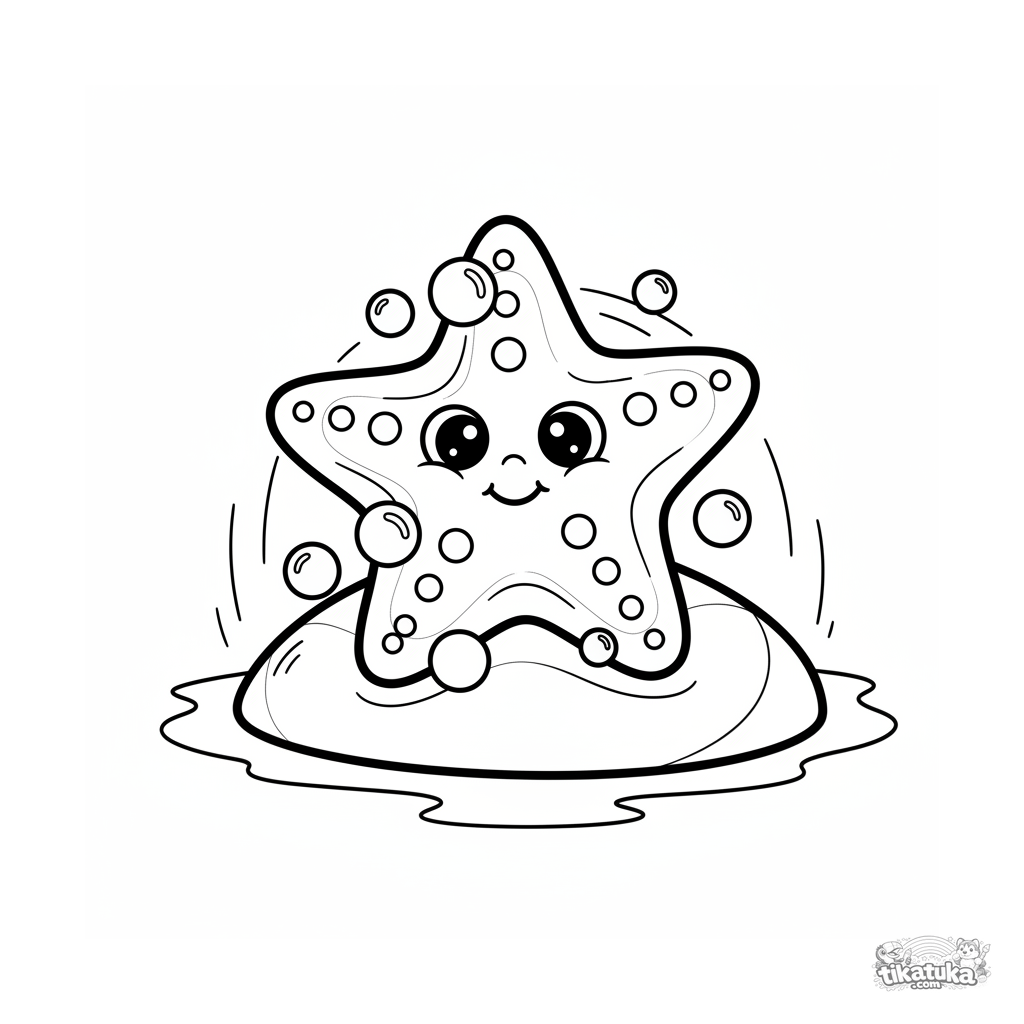 Очень простая раскраска для малышей 2-3 лет: морская звезда лежит на камне в теплой воде. Огромные поля для раскрашивания, минимальные детали.