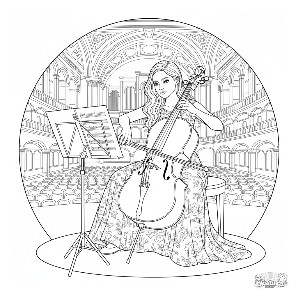 Раскраска в теме «Музыка» с уровнем «Сложно». Подходит для возраста 10+ лет, удобно распечатывается дома и сразу открывается в онлайн-режиме.
