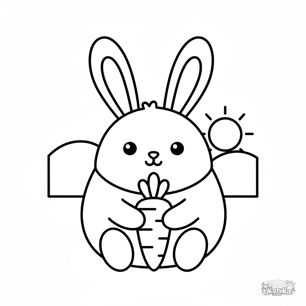 Раскраска для малышей 2-3 лет: большой круглый кролик держит морковку. Простые крупные формы, толстые контуры, идеально для первых опытов с красками. Раскраска по номерам для детей.