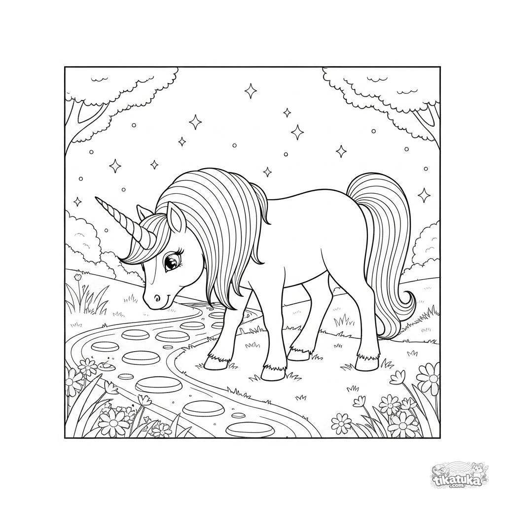 Раскраска в теме «Пони» с уровнем «Средне». Подходит для возраста 3-6 лет, удобно распечатывается дома и сразу открывается в онлайн-режиме.
