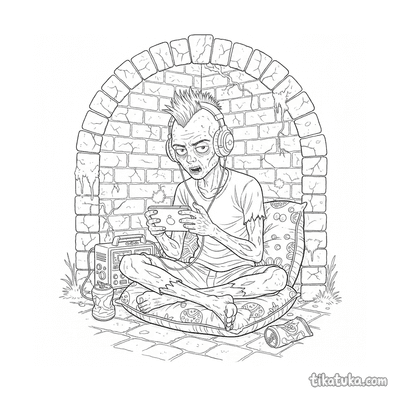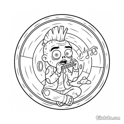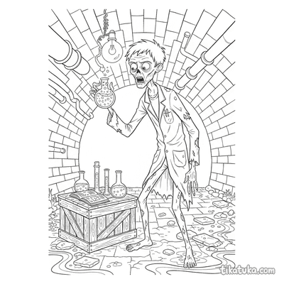 Раскраска в теме «Зомби» с уровнем «Средне». Подходит для возраста 4-6 лет, удобно распечатывается дома и сразу открывается в онлайн-режиме.