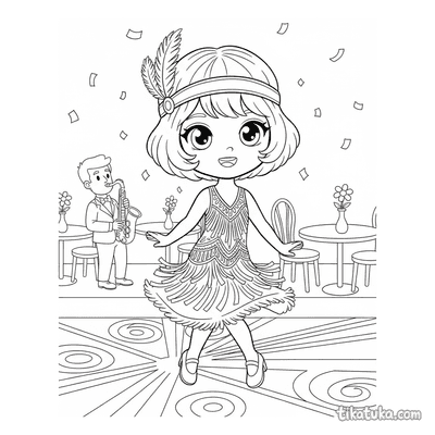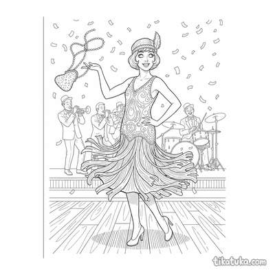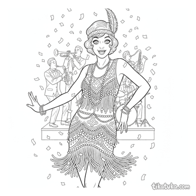 Вы можете скачать все 15 черно-белых контурных рисунка одним архивом для удобной печати. Четкие линии и проработанные детали костюмов позволяют раскрашивать их как онлайн, так и карандашами или фломастерами, создавая свои цветовые решения для нарядов 20-х годов.