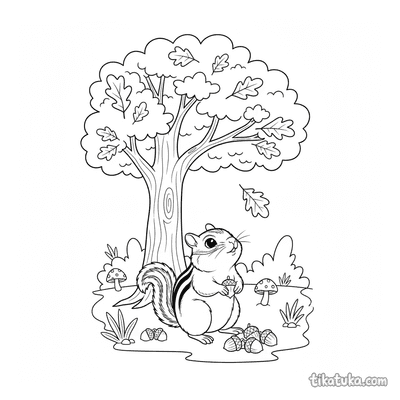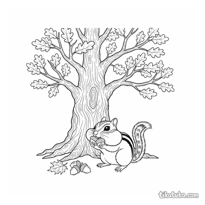 Желудь — это не просто плод дуба, а целый мир для детского творчества. На этих раскрасках он становится частью осенних приключений лесных зверят. Картинки показывают желуди в самых разных ситуациях: от запасов на зиму до уютных домиков.