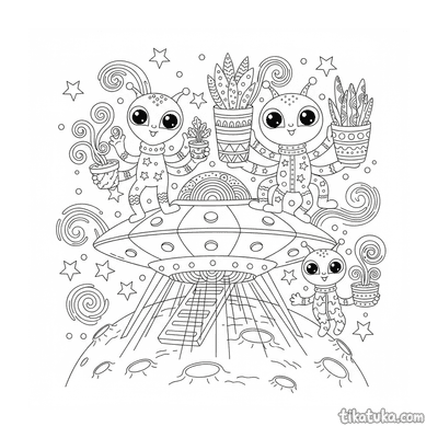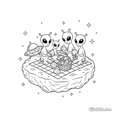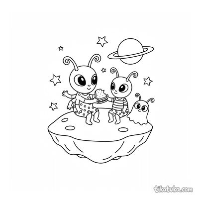 В подборке представлены инопланетяне-исследователи на Луне и астероидах, семьи пришельцев, разгружающие свои летающие тарелки, и космонавты из других миров. Сюжеты включают посадку на кометы, установку флагов на кратерах и путешествия на ракетах с инопланетными пилотами. Все 90 раскрасок можно скачать одним архивом для удобной печати дома или в садике. Четкие контуры без фона идеально подходят для детского творчества — их легко раскрашивать карандашами или фломастерами, а также можно попробовать раскрасить прямо на сайте.