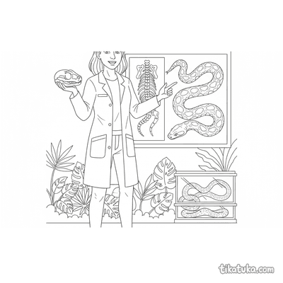 Зоолог показывает рентген скелета змеи на учебном стенде