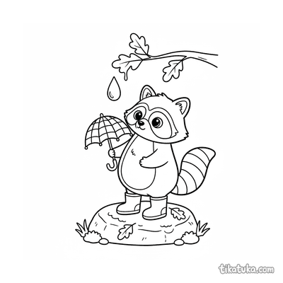 Енот с зонтиком под веткой
