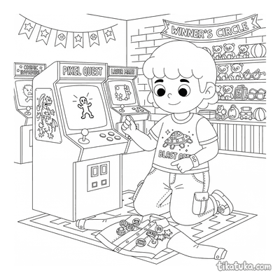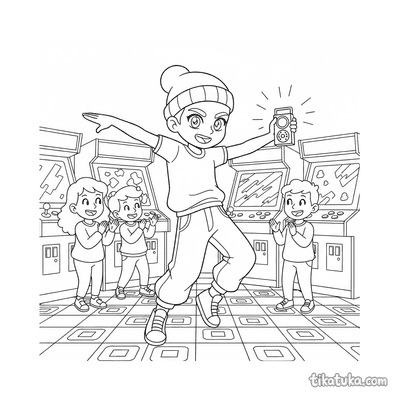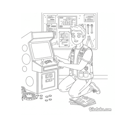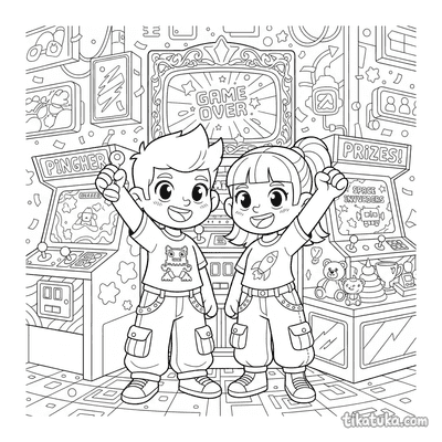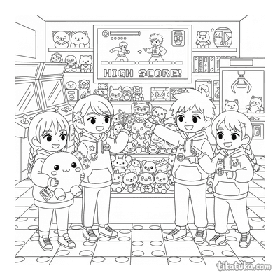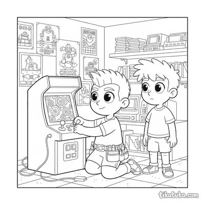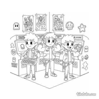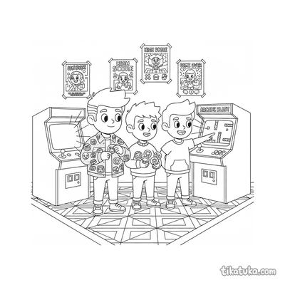 В разделе представлены сюжеты с ретро-геймерами, собирающими значки и играющими музыку, друзьями из аниме-клуба, уличными танцорами и мастерами, которые моддерят и реставрируют аркадные автоматы. Все сцены происходят в узнаваемой обстановке классического аркадного зала. Вы можете скачать все 13 раскрасок с аркадной тематикой одним архивом для удобной печати. Контуры нарисованы четко, что позволяет аккуратно раскрашивать мелкие детали автоматов и одежды персонажей как на экране, так и на бумаге.