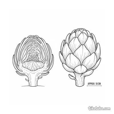 В этой подборке вы найдете артишок в ботаническом разрезе, растущим в саду рядом с пчелой и лежащим на разделочной доске. Есть и сказочные сюжеты, например, артишок-король на троне из листьев или застенчивое растение. Все 16 раскрасок с артишоком доступны для скачивания в хорошем качестве. Вы можете распечатать любую понравившуюся картинку на обычном принтере и сразу приступить к раскрашиванию четких контуров.