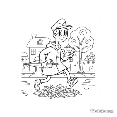 Почтальон с письмами под осенним дождём