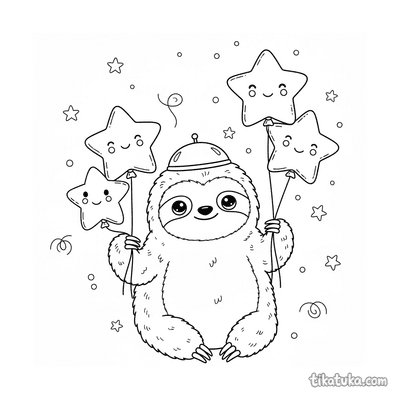 Ленивец с воздушными шарами в космосе