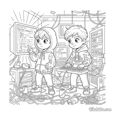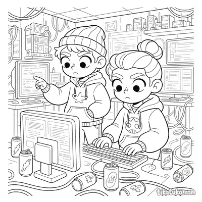 Подвал — это место для творчества, технологий и тайн. Наши раскраски показывают подвалы, где кипит необычная жизнь. Здесь дети найдут сцены с хакерами, музыкантами, коллекционерами и их изобретениями.