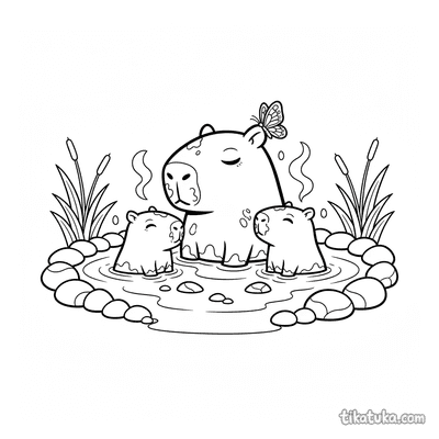 Семья капибар в тёплой грязевой ванне