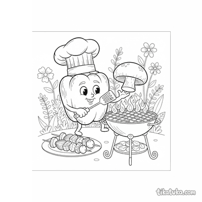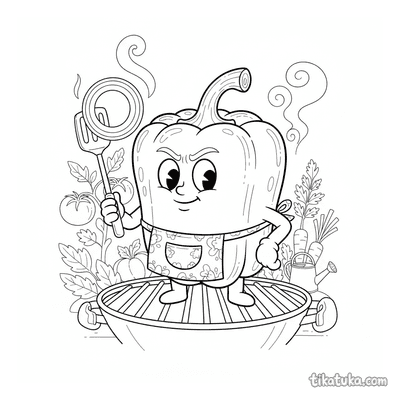 Здесь перец предстает в роли повара у гриля, танцует на шампуре в виде кебаба или путешествует на лодке-кабачке. В коллекции есть сцены с овощными шашлычками, где перец готовится вместе с грибами, и забавные композиции на разделочной доске. Все контуры четкие и подходят для детского творчества. Вы можете скачать любую картинку для печати одним файлом или раскрасить ее прямо на сайте. Черно-белые рисунки с перцем хорошо пропечатываются даже на простом принтере.
